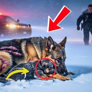 Tragödie im Schneesturm – Ein verletzter Schäferhund steht allein im eisigen Blizzard, sein Körper voller Narben, seine Augen voller Schmerz. Niemand weiß, warum…