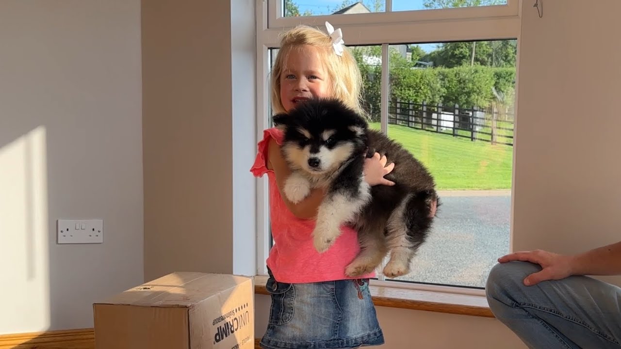 Und so begann eine Freundschaft, die stärker war als Worte, größer als alle Zweifel und heller als jeder Regentag. Ein magischer erster Moment, der die Herzen berührte – zwischen einem kleinen Mädchen und einem tapsigen, flauschigen Malamute-Welpen.