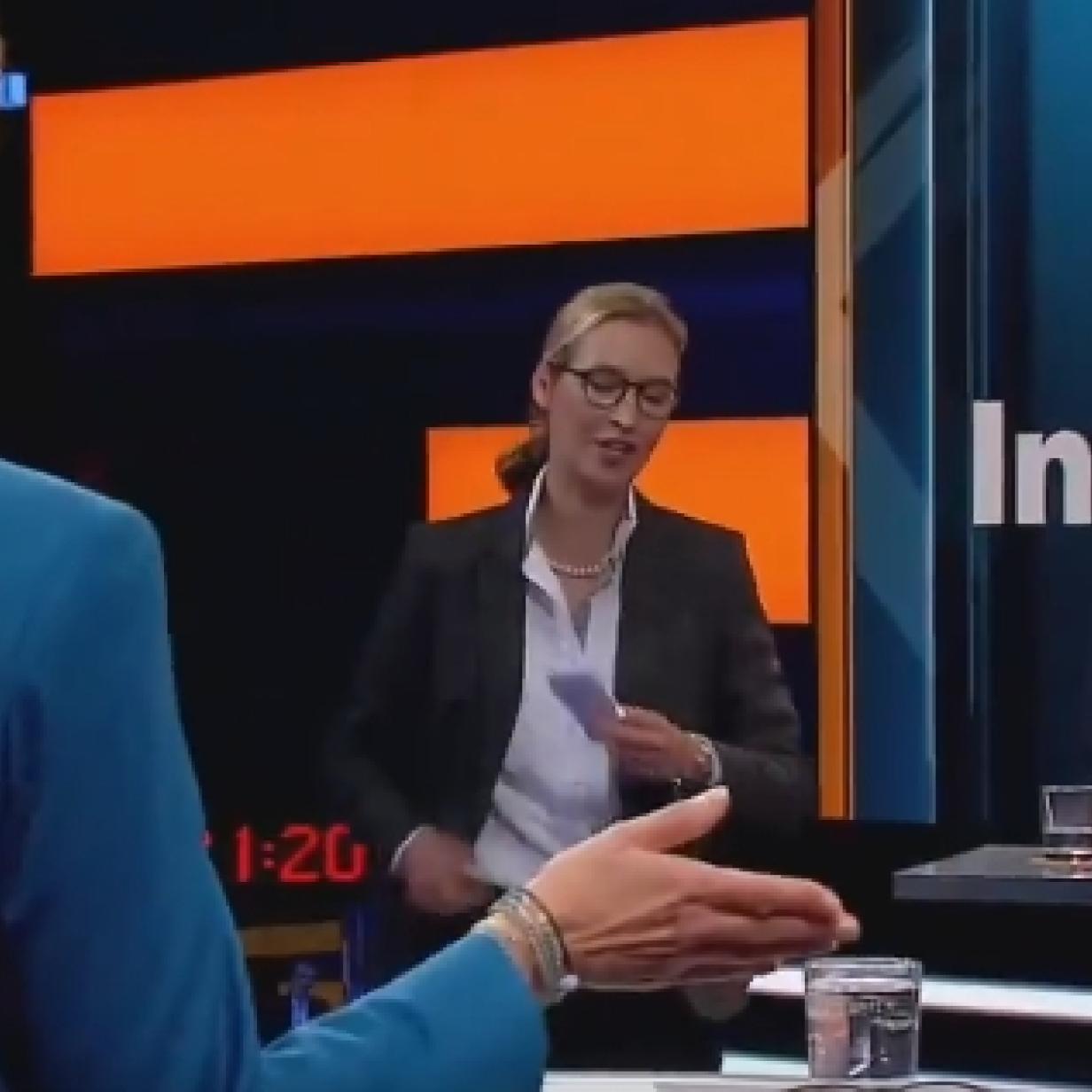 Da stand Alice Weidel auf. Kontrolliert, aber zitternd vor Wut, griff sie nach ihrer Handtasche. “Ich lasse mir von Ihnen nicht sagen, was eine Schande ist. Sie missbrauchen Ihre Plattform, um Menschen zu demütigen. Das ist das Einzige, was hier eine Schande ist.”