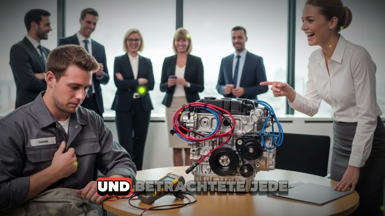 ” Katharina brach in verächtliches Gelächter aus und stellte vor allen Führungskräften die unverschämteste Herausforderung ihres Lebens. Wenn Sie es schaffen, diesen Motor zu reparieren, den zwölf Ingenieure nicht reparieren konnten, heirate ich sie. Der Raum verstummte. Stefan blickte ihr direkt in die Augen und antwortete: “Einverstanden.